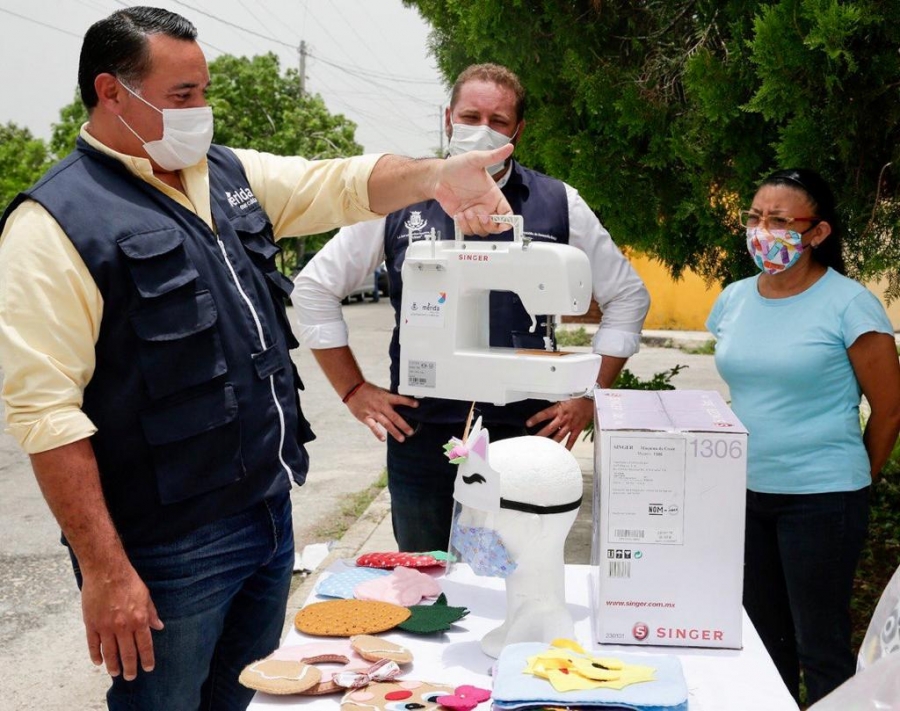 Posterior a esta entrega, Barrera Concha visitó a la señora Eugenia Beatriz Rosado Cardeña, en el predio No. 140 de la calle 26 con 3-A del fraccionamiento Juan Pablo II, para entregarle una máquina de coser que le permitirá continuar la elaboración de manualidades, las cuales ofrece a través de la página de Facebook “Miss Moñadas”.