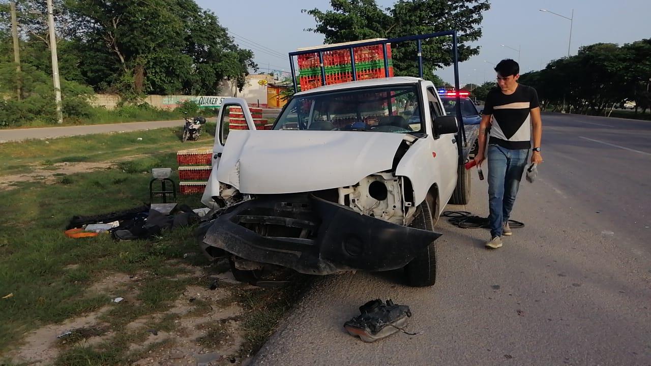 Debido al golpe, el conductor de la camioneta se salió de la cinta asfáltica con todo el el frente dañado mientras que al tráiler no le pasó nada, al final los conductores se pusieron de acuerdo para el pago de los daños.