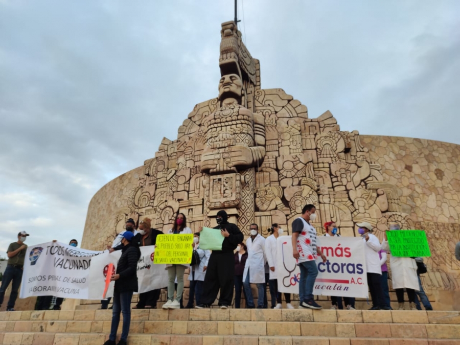 “Consideramos que los médicos de primer contacto, como el personal de salud de esa área debemos ser tomados en cuenta para ser vacunados, el hecho de que no estemos en un área de terapia intensiva o cuidados críticos, no quiere decir que tengamos menor riesgo que nuestros compañeros de especialidad que laboran en esas áreas”, indicó Alberto Cano médico del sector salud que se encontraba en la protesta.