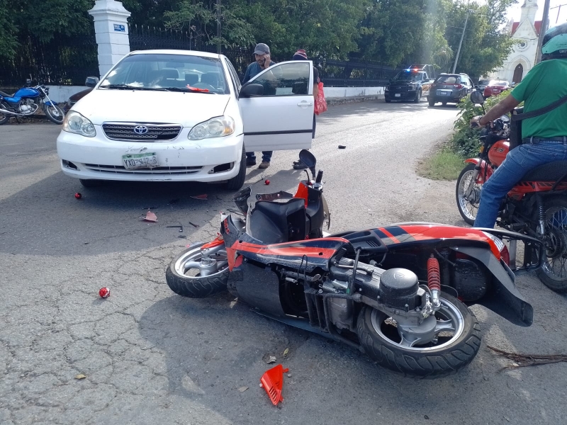 Un motociclista resultó con varias lesiones luego de ser atropellado por un automóvil compacto, la mañana de este jueves, en calles de la colonia Chuminópolis, al Oriente de la capital yucateca.