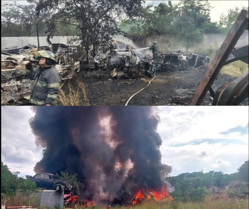 A través del número de emergencias 9-1-1 se reportó un incendio de maleza en el kilómetro 11+500 de la carretera Mérida–Cancún, el cual se propagó a un encierro de vehículos chatarra.