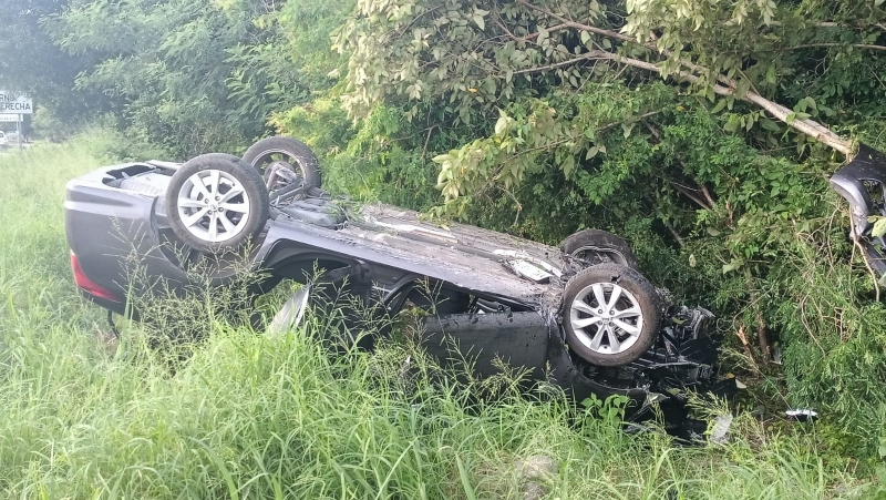 Con golpes en diferentes partes del cuerpo terminó el conductor de un vehículo compacto que se volcó en la carretera federal Mérida-Progreso, luego de perder el sentido al volante, la tarde de este jueves.