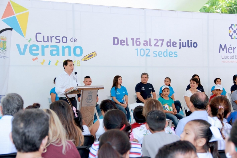 El Ayuntamiento de Mérida dio a conocer el programa de cursos de verano 2018 que en esta ocasión se realizará del 16 al 27 de julio en 102 sedes de Mérida y sus comisarías y cuyo fin es ofrecer oportunidades de convivencia, aprendizaje, deporte y diversión para niños del municipio.