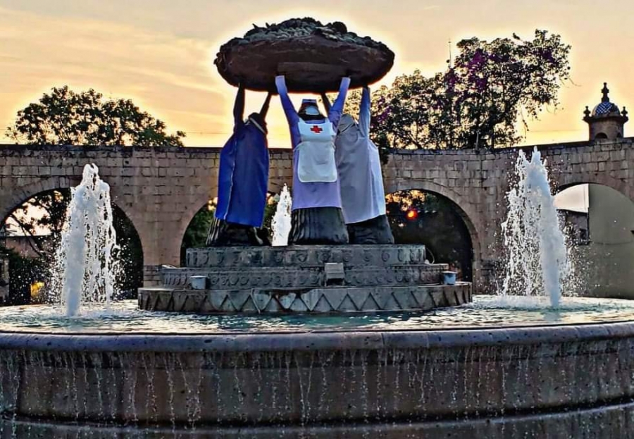 “Hoy más que nunca debemos reconocer a nuestras heroínas y nuestros héroes que son los trabajadores de salud. La emblemática fuente de Las Tarascas se vistió para recordar su aportación”, reveló Antonio Aguilera, director de Comunicación Social de la comuna moreliana en redes sociales virtuales.