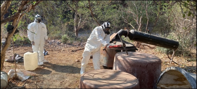 Un total de seis laboratorios clandestinos, para la elaboración de droga sintética en los municipios de Cosalá y Elota, en el Estado de Sinaloa, fueron asegurado por personal del Ejército Mexicano, los días 5 y 6 de junio del presente mes.
