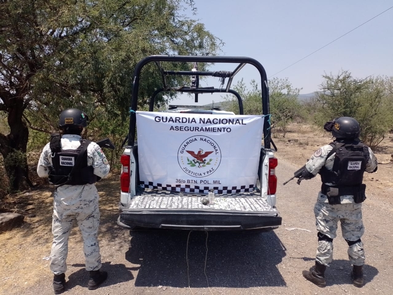 El decomiso ocurrió cuando guardias nacionales realizaban patrullajes de seguridad en la comunidad de Luiciada, en el municipio de Apaseo el Alto, Guanajuato, donde observaron a dos hombres a bordo de una motocicleta, quienes, al notar la presencia de las unidades oficiales, emprendieron la huida.