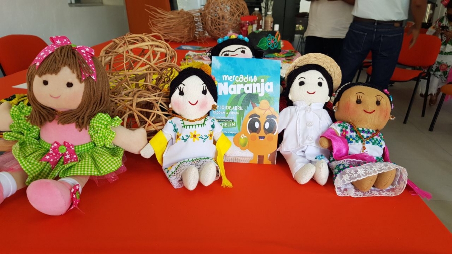 Entre los expositores se encuentra "Muñecas Peregrina" negocio familiar que confecciona muñecas de tela y ropa típica yucateca, proyecto originario del municipio de Ixil que da empleo a seis personas fijas en su taller.