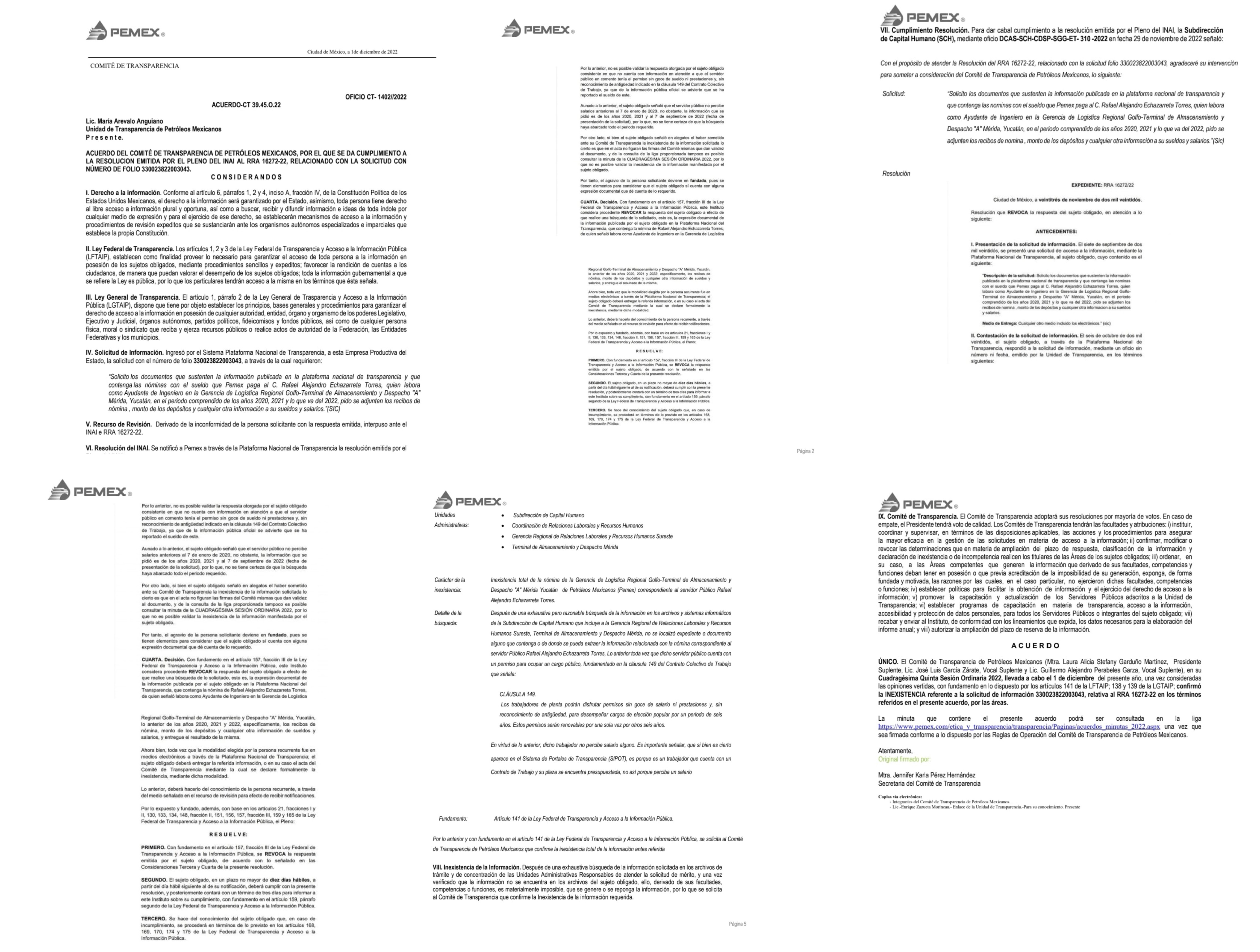 Incluso, la dependencia federal se negó de facto a entregar la información de los meses anteriores al permiso solicitado por el legislador, lo cual fue su argumento inicial para negar documentos que soportaran la erogación de más de 60 mil pesos mensuales a Echazarreta Torres como parte de su sueldo en Pemex.