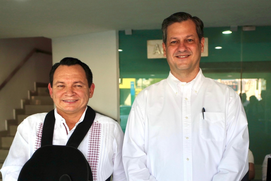 Díaz Mena acudió al foro denominado “Diálogo con Candidatos a la Gubernatura de Yucatán”, organizado por la Camara Nacional de la Industria de la Transformación (Canacintra) donde fu recibido por el presidente de ese organismo en la entidad Alejandro Gómory Martínez,