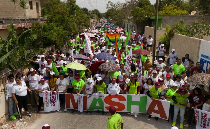 Kanasín, Yucatán.- El pueblo ya decidió y Florentino Chan Gamboa “Masha” será el próximo presidente municipal, aseguró Joaquín Díaz Mena “Huacho”, candidato a la gubernatura de Yucatán por los partidos Movimiento Regeneración Nacional (Morena), Verde Ecologista de México (PVEM) y del Trabajo (PT), al concluir una caminata donde fueron acompañados por más de mil 500 personas, que sin importar el inclemente Sol, se sumaron para difundir el mensaje de bienestar y esperanza.